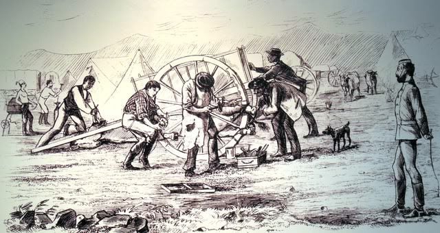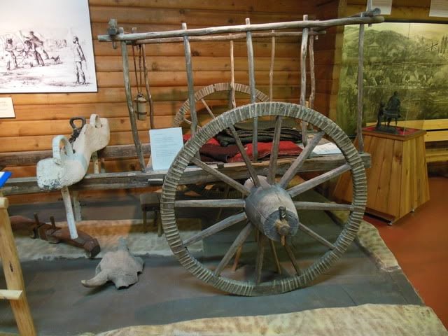 Shown above is a drawing of a Red River cart on display in Fort Macleod.