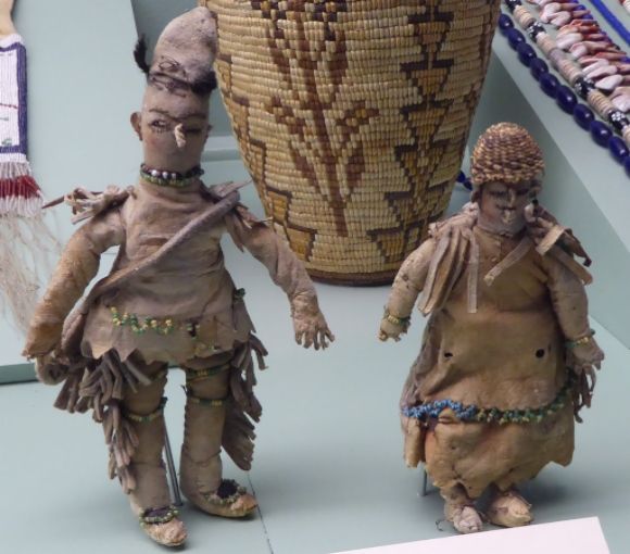 The pair of dolls shown above show Plateau dress. Notice the basketry cap worn by the woman.