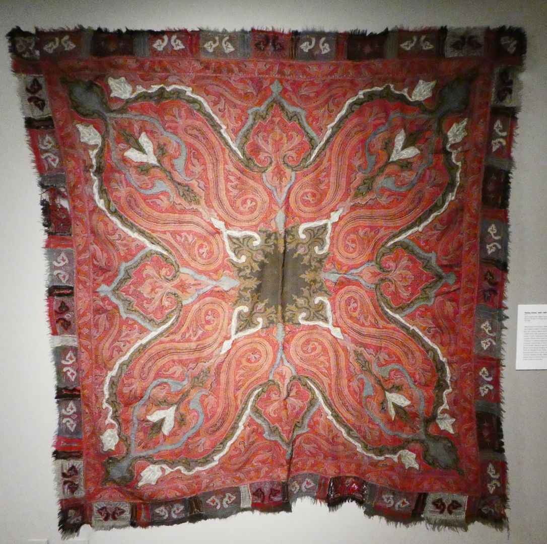 “Handwoven wool shawls from the Kashmir Valley were highly priced in England and France during the 18th century. British and French weavers copied them, although they continued to be made in India. These pieces became known as ‘paisley’ shawls when weavers in Paisley, Scotland, increased production by using a Jacquard mechanism on their looms.”