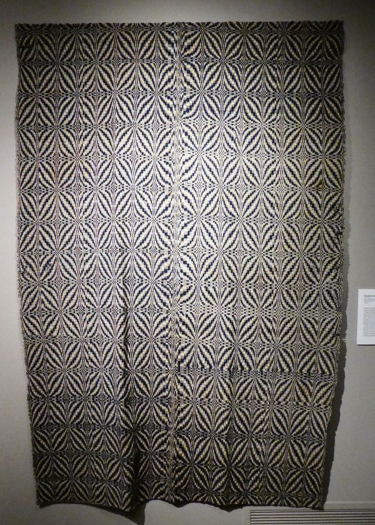 Shown above is an overshot coverlet with a leaf pattern from 1800-1850. This was probably made in the eastern United States. ‘Overshot’ refers to the supplementary wool yarn that ‘overshoots’ a foundation of linen or cotton.