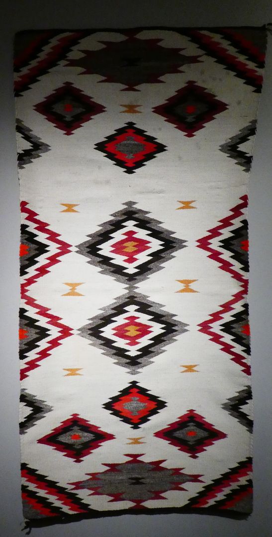 “Pieces like these were always meant for sale and were not used as ceremonial objects. Navajo weavers, who were almost always female, use a seemingly infinite variety of designs.”